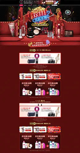 美宝莲 美妆 彩妆 化妆品 双11预售 双十一来了 天猫首页活动专题页面设计