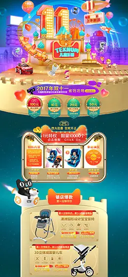 teknum 母婴用品儿童玩具童装 双11预售 双十一来了 天猫首页活动专题页面设计