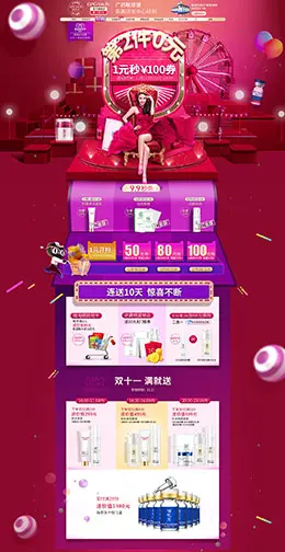 佰花方 美妆 彩妆 化妆品 双11预售 双十一来了 天猫首页活动专题页面设计