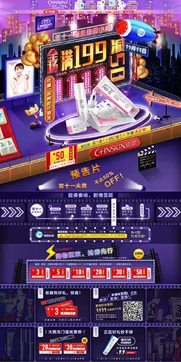 瓷肌拓赛斯美妆 彩妆 化妆品 双11预售 双十一来了 天猫首页活动专题页面设计