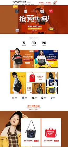 初语箱包 男女箱包 皮具 包包 女包 双11预售 双十一来了 天猫首页活动专题页面设计
