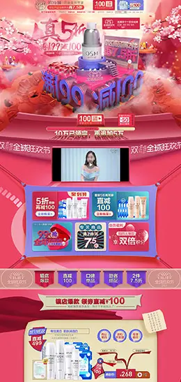 老中医化妆品 美妆 彩妆 双11预售 双十一来了 天猫首页活动专题页面设计