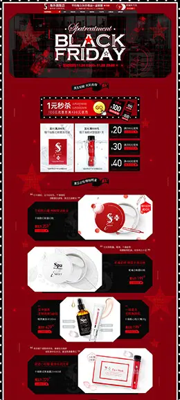 SpaTreatment海外 美妆 彩妆 化妆品 黑色星期五 黑五 天猫首页活动专题页面设计