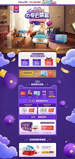 爽然 母婴用品 儿童玩具 童装 双12来了 双十二 天猫首页活动专题页面设计