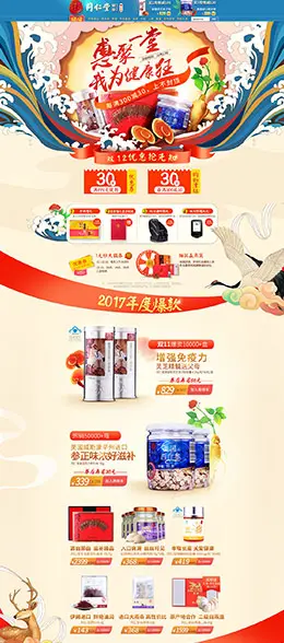 北京同仁堂 营养保健食品 滋补膳食 医药 双12来了 双十二 天猫首页活动专题页面设计