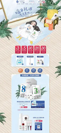 瓷肌 美妆 彩妆 化妆品 暖冬 手绘插画 天猫首页活动专题页面设计