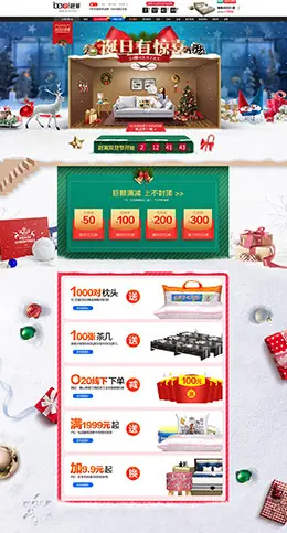 moonlightfamily 家纺 床垫 床品 圣诞节 双蛋节 天猫首页活动专题页面设计