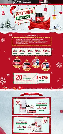 gnc健安喜 营养保健食品 滋补膳食 医药 圣诞节 双蛋节 天猫首页活动专题页面设计