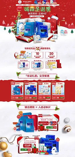 森田药妆 美妆 彩妆 化妆品 圣诞节 双蛋节 天猫首页活动专题页面设计