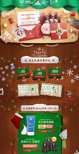 leaders 美妆 彩妆 化妆品 圣诞节 双蛋节 天猫首页活动专题页面设计