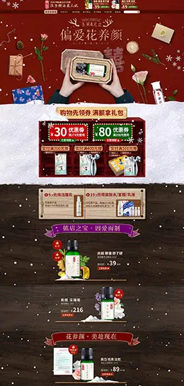 松本清 美妆 彩妆 化妆品 圣诞节 双蛋节 天猫首页活动专题页面设计