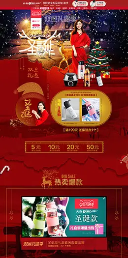 天喜 家居用品 日用百货 圣诞节 双蛋节 天猫首页活动专题页面设计