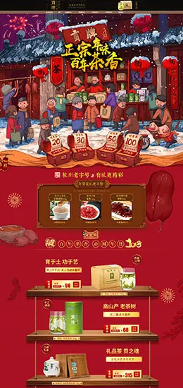 贡牌茶叶 食品 零食 酒水 年货节 腊八抢年货 天猫首页活动专题页面设计