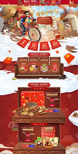 首粮 食品 零食 酒水 年货节 腊八抢年货 天猫首页活动专题页面设计
