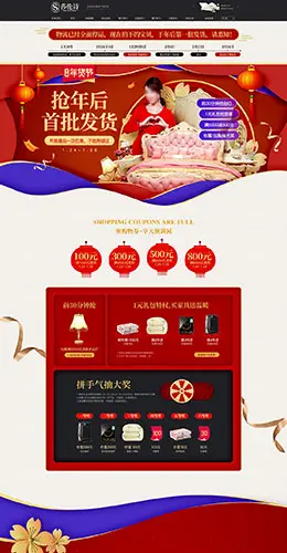 莎伦诗家具 装修建材 家装 家居 年货节 腊八抢年货 天猫首页活动专题页面设计