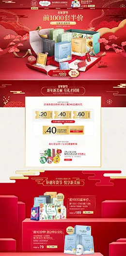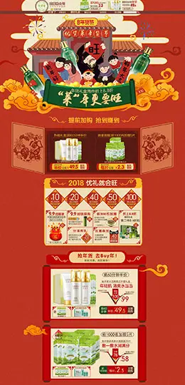 优资莱 美妆 彩妆 化妆品 年货节 腊八抢年货 天猫首页活动专题页面设计