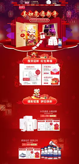佰花方 美妆 彩妆 化妆品 年货节 腊八抢年货 天猫首页活动专题页面设计