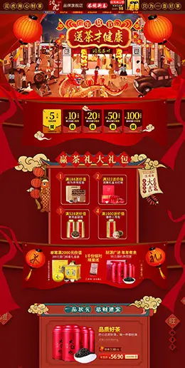 润虎茶叶 食品 零食 酒水 年货节 腊八抢年货 天猫首页活动专题页面设计
