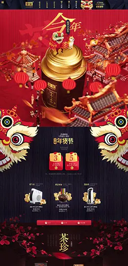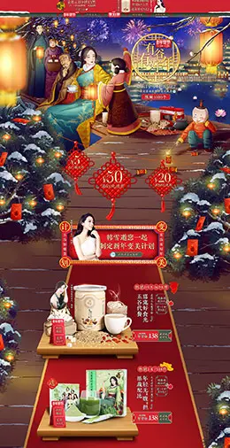京冠 食品 零食 酒水 年货节 腊八抢年货 天猫首页活动专题页面设计