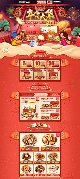 新农哥 食品 零食 酒水 年货节 腊八抢年货 天猫首页活动专题页面设计