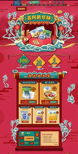 百颐年 食品 零食 酒水 年货节 腊八抢年货 天猫首页活动专题页面设计