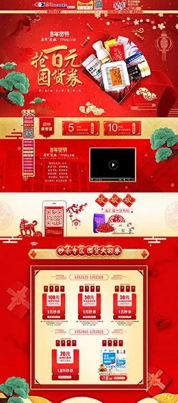 京冠 食品 零食 酒水 年货节 腊八抢年货 天猫首页活动专题页面设计