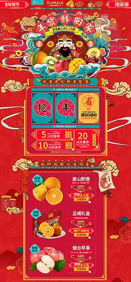 王小二 食品 零食 酒水 年货节 腊八抢年货 天猫首页活动专题页面设计