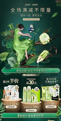 百雀羚 美妆 彩妆 化妆品 手机版 无线端 M端 店铺首页页面设计