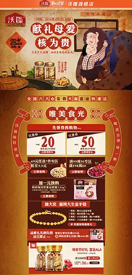 沃隆 食品 零食 酒水 母亲节 天猫首页活动专题页面设计
