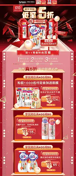 sana莎娜 美妆 彩妆 化妆品 双11预售 双十一来啦 天猫首页页面设计