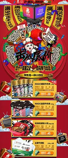 小奶花 食品 零食 坚果 酒水 双11预售 双十一来啦 天猫首页页面设计