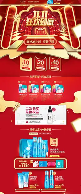 依斯莉 美妆 彩妆 化妆品 双11正式 双十一 天猫首页页面设计