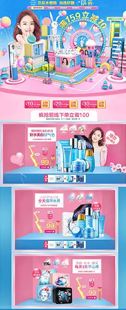 水密码欣靓 美妆 彩妆 化妆品 双11正式 双十一 天猫首页页面设计