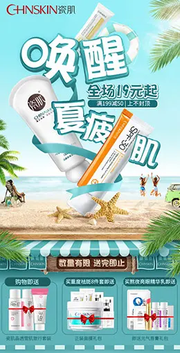 瓷肌 美妆 彩妆 化妆品 手机版 无线端 M端 店铺首页页面设计