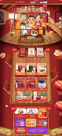 桃花姬 营养保健食品 滋补膳食 医药 年货节 新年 天猫首页页面设计