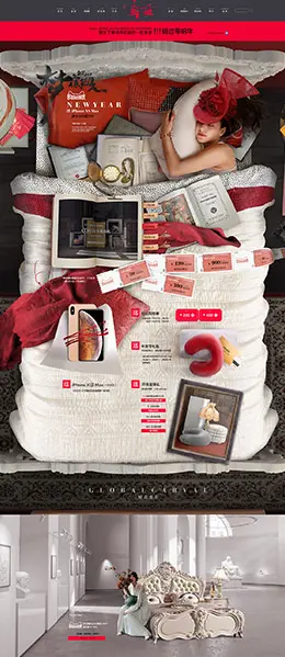 水星家纺 家纺 床垫 床品 年货节 新年 天猫首页页面设计