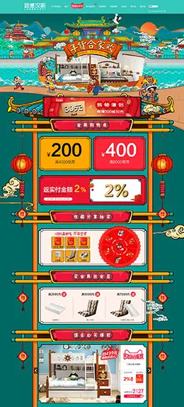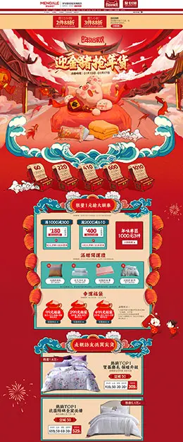 梦洁 家纺 床垫 床品 年货节 新年 天猫首页页面设计