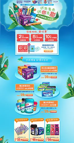 mentos曼妥思 食品 零食 酒水 春夏手绘 天猫店铺首页设计