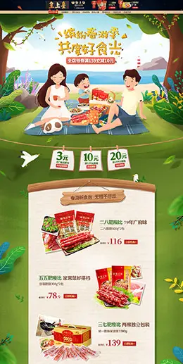皇上皇 食品 零食 酒水 51出游季 手绘插画 天猫店铺首页设计