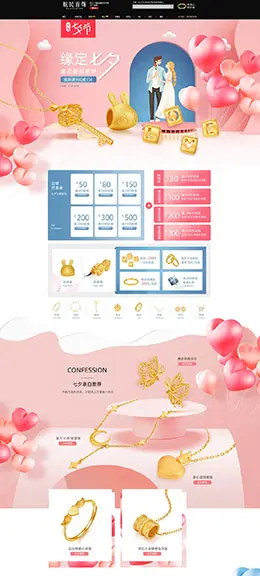 航民首饰 珠宝 首饰 饰品 七夕节 天猫首页活动专题页面设计