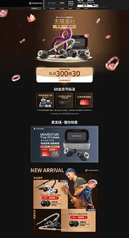 sennheiser 家电 3C数码 家用电器 88会员节 黑金 天猫首页活动专题页面设计