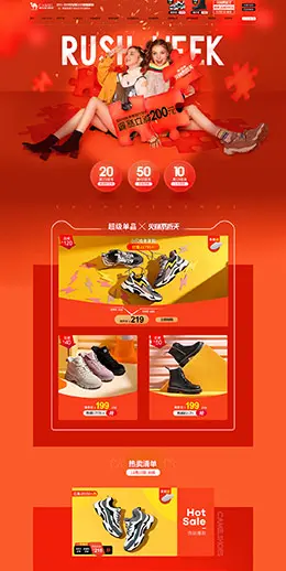 骆驼女鞋 女士皮鞋 靴子 火拼周 天猫首页活动专题页面设计