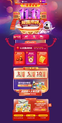 旺旺食品 零食 酒水 双11预售 双十一来了 天猫首页活动专题页面设计