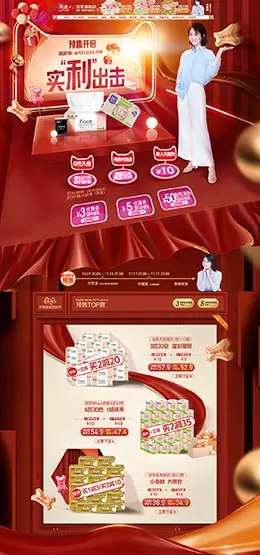 洁柔 家居用品 日用百货 双11预售 双十一来了 天猫首页活动专题页面设计