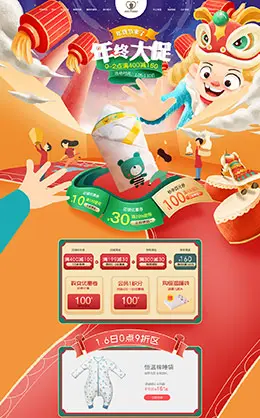 启初 母婴用品 儿童玩具 童装 新年 年货节 天猫首页活动专题页面设计