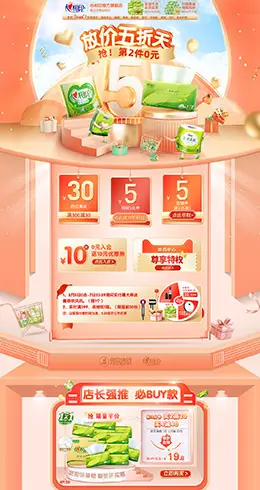心相印 家居用品 日用百货 55吾折天盛典 天猫首页活动专题页面设计