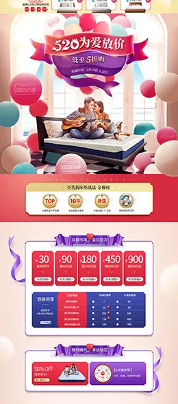 金橡树 家纺 床垫 床品 520告白季 天猫首页活动专题页面设计
