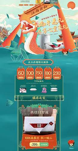 江南古韵家纺 古风 国潮 中国风 端午节 天猫首页活动专题页面设计