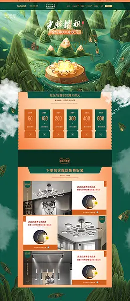 名尊家居 家装 灯饰照明 灯具 端午节 天猫首页活动专题页面设计