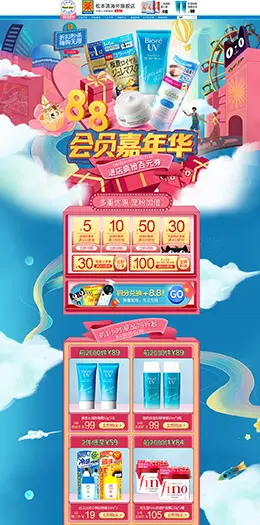 MatsumotoKiYoshi 美妆 彩妆 化妆品 88会员节 天猫首页活动专题页面设计